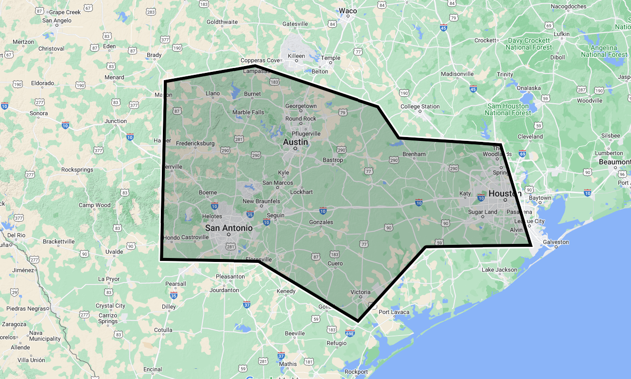 We are a Texas company proudly serving from Central Texas to parts of the Gulf Coast.